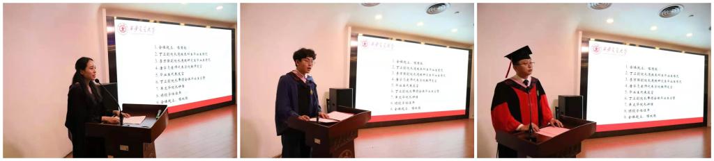 本科毕业生皮羽宏、硕士毕业生戴海洋和博士毕业生刘桢三位同学对学校、博鱼集团官网(中国)官方网站和老师们的辛勤培养表达了感恩和感谢。本科毕业生皮羽宏说感恩遇见交大博鱼集团官网(中国)官方网站、学院老师们以及身边的同学们;硕士毕业生戴海洋认为“西迁精神”是全体交大人的精神钙片,走到哪里,就能把“西迁精神”带到哪里;博士毕业生刘桢提到母校和博鱼集团官网(中国)官方网站所教授的“爱国爱校、追求真理、勤奋踏实、艰苦朴素”的优良学风、研风以及“德法兼修”的人生目标终将陪伴受益终生。