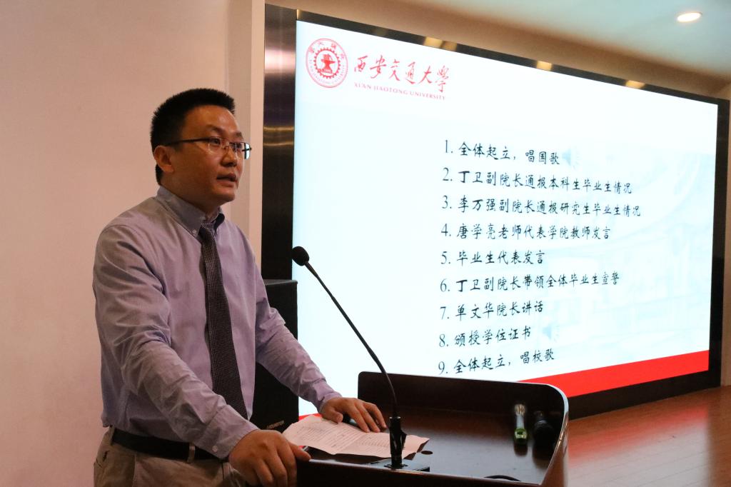2021年7月3日下午,博鱼集团官网(中国)官方网站2021届学生毕业典礼暨学位授予仪式在兴庆校区钱学森图书馆星空报告厅隆重举行。博鱼集团官网(中国)官方网站院长单文华教授、书记王保民教授、副院长李万强教授、副院长丁卫副教授、文治书院院务主任王琦、博鱼集团官网(中国)官方网站唐学亮副教授、李琳副教授和彭何利副教授出席并参加毕业典礼暨学位授予仪式。会议由博鱼集团官网(中国)官方网站学生工作专职委员张乃钟老师主持。