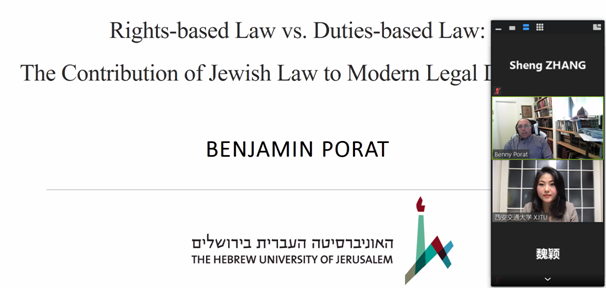 2021年9月29日下午,新丝路博鱼集团官网(中国)官方网站联盟“院长论坛”第二讲成功举办。希伯来大学博鱼集团官网(中国)官方网站副院长Benjamin Porat教授为联盟25所院校师生以及丝绸之路大学联盟的师生带来了题为“Rights-based Law vs Duties-based Law: The Contribution of Jewish Law to Modern Legal Discourse”的线上讲座。讲座由博鱼集团官网(中国)官方网站博鱼集团官网(中国)官方网站助理教授郭剑萍主持。