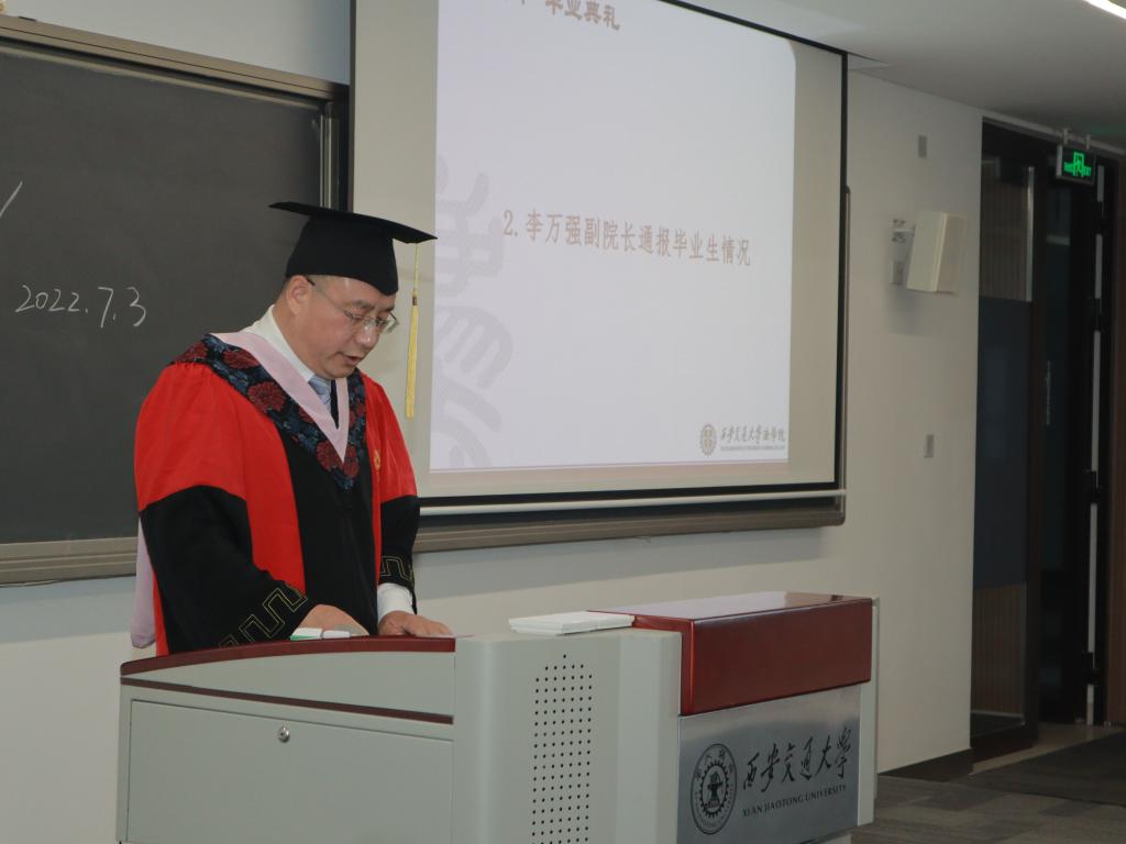 在庄严的国歌声中,博鱼集团官网(中国)官方网站博鱼集团官网(中国)官方网站2022届毕业典礼正式开始。李万强副院长首先通报了2022届毕业生情况。博鱼集团官网(中国)官方网站坚持以培养具有科学素养、家国情怀、国际视野、具有社会责任感的拔尖法科人才为目标。每一位毕业生都是在学院的陶冶中,在师长的教导与引领下,逐步成长起来的。在未来的人生旅途上,博鱼集团官网(中国)官方网站也将是所有毕业学子的坚实后盾。