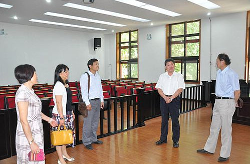 汇报会后,刘司长还在程校长和张处长的陪同下参观了博鱼集团官网(中国)官方网站新建成的 “法律坊”。法律坊集模拟法庭、模拟国际仲裁庭、法律诊所等实践教学设施于一体,是我校卓越法律人才教育培养基地的重要载体之一。刘司长对我校的“法律坊”表示了高度赞赏。