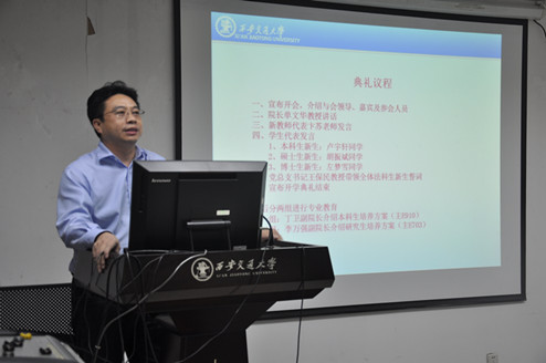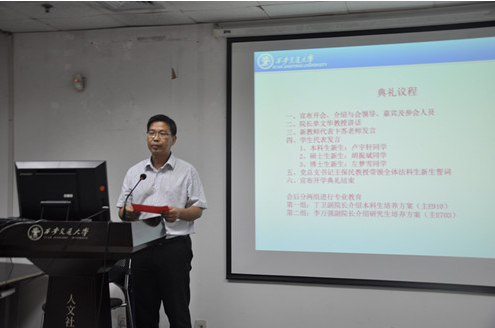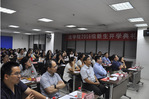 9月18日晚,博鱼集团官网(中国)官方网站2016级新生开学典礼在主E703隆重举行。院长单文华教授,党总支书记王保民教授,副院长李万强教授,副院长丁卫副教授,院长助理吉兰湘老师和苏金远教授,院工会主席张弘副教授,文治书院院务副主任郭小平老师,院办主任张美萍老师,法学复合51班班主任薛华、唐学亮老师,法学61班班主任王玉苹、卞苏老师以及全体2016级本科、硕士、博士生新生参加了开学典礼,会议由学院学生工作专职委员张乃钟老师主持。