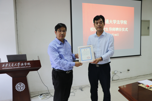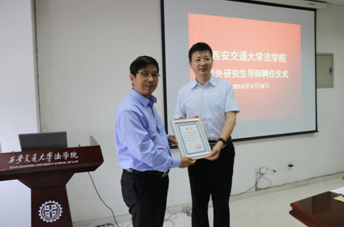 2018年5月18日下午,博鱼集团官网(中国)官方网站博鱼集团官网(中国)官方网站法律硕士研究生“协同培养育人项目”校外导师(首批)聘任仪式暨专业实践课程教学研讨会在兴庆校区教学主楼910会议室举行。博鱼集团官网(中国)官方网站党总支书记王保民教授、副院长李万强教授、副院长丁卫副教授,院长助理张生副教授、教师代表吴锐讲师和研究生代表参加了聘任仪式。