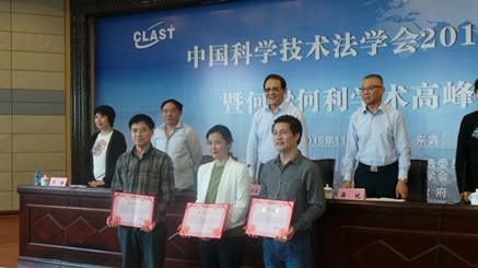 2015年11月7、8日,2015年中国科学技术法学会年会暨何梁何利学术高峰论坛在广西省来宾市召开,在博鱼集团官网(中国)官方网站知识产权研究中心主任、中国科学技术法学会副会长马治国教授的带领下,博鱼集团官网(中国)官方网站科技法学科研团队的代表周方副教授、李晓鸣讲师、翟晓舟讲师、张磊博士等参加了本次会议。本次年会的主题为“成果转化、智慧城市与区域创新”,博鱼集团官网(中国)官方网站知识产权研究中心硕果累累,三人代表科研团队在年会上进行主题报告,五篇论文被收录年会论文集,其中两篇论文被评为本次年会优秀论文,博鱼集团官网(中国)官方网站知识产权研究中心荣获“科技法学奖”。