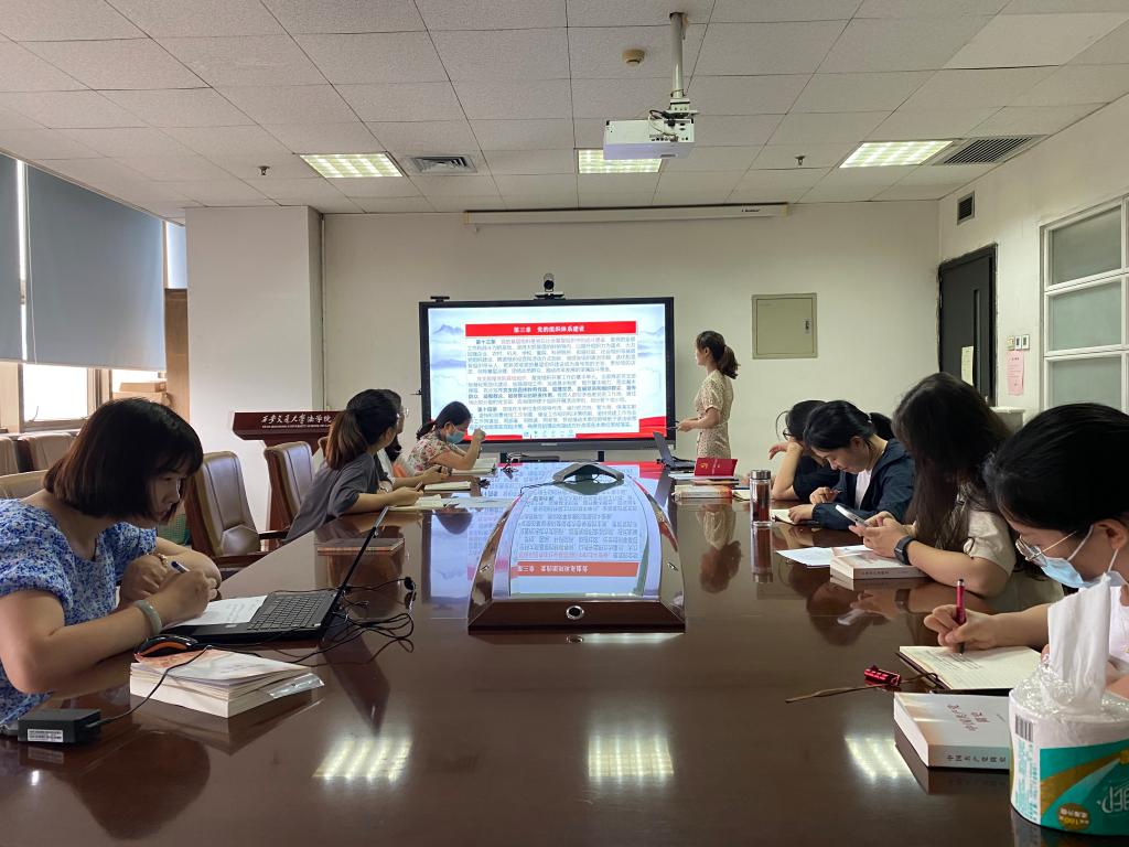 首先,支部书记李晶总结了上半年行政党支部开展党史学习教育情况,并以“守初心、担使命,以高质量党建引领高质量发展”为题为支部党员讲党课。她带领党员回顾了习近平总书记在庆祝中国共产党成立100周年大会上的重要讲话精神,深入学习了习近平总书记提出的以史为鉴、开创未来的“九个必须”。她带领支部成员集体学习了《中国共产党组织工作条例》,再次强调了支部的职责和党员的使命。李晶同志表示,行政支部党员要立足于管理服务岗位,持续加强政治理论学习,牢固树立“四个意识”;要不断提升业务能力,深入践行全心全意为师生服务的宗旨;要守初心、担使命,建强支部战斗堡垒,以高质量党建引领高质量发展,为学院的各项工作的推进做好服务保障。