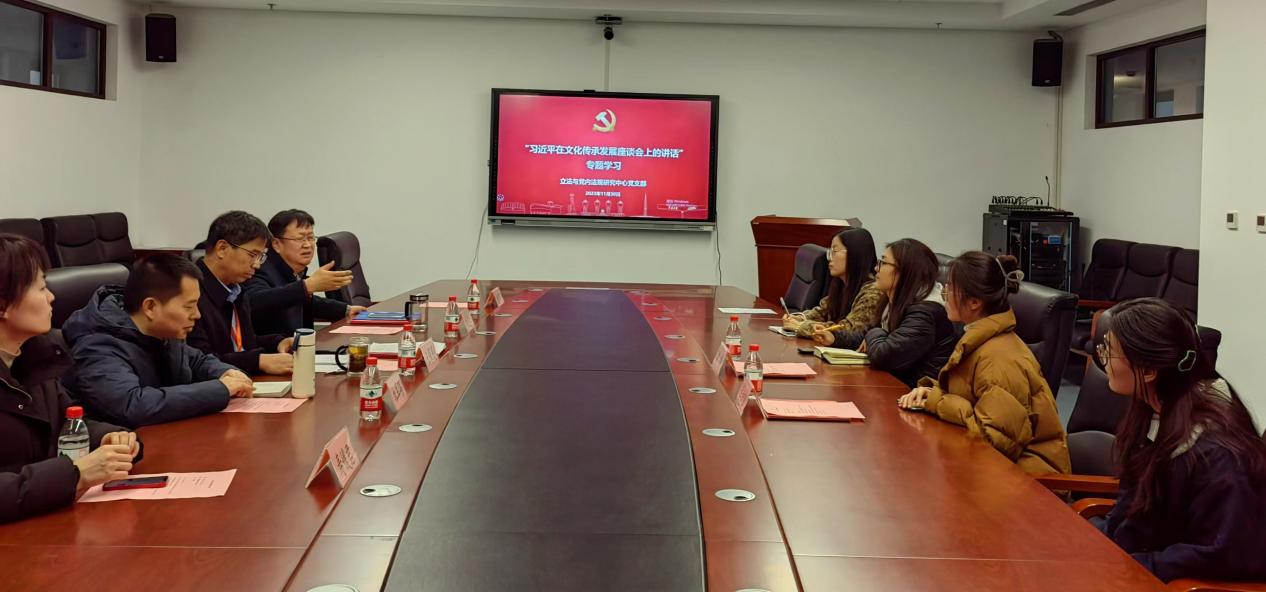 2023年11月30日,博鱼集团官网(中国)官方网站立法与党内法规中心党支部在创新港涵英楼3079教室召开学习“习近平在文化传承发展座谈会上的讲话”组织生活会。党支部书记杜军强主持会议。