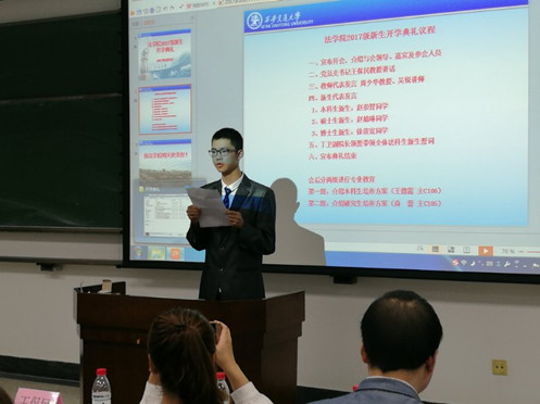 金秋送爽,丹桂飘香。9月9日下午,博鱼集团官网(中国)官方网站2017级新生开学典礼在主C105隆重召开。博鱼集团官网(中国)官方网站党总支书记王保民、文治书院院主任张爱萍、博鱼集团官网(中国)官方网站副院长丁卫、院长助理吉兰湘、法复合61班班主任王玉苹、法71班班主任李琳以及博鱼集团官网(中国)官方网站2017级全体本科生、硕士生、博士生新生参加了开学典礼。开学典礼由学生工作专职委员张乃钟老师主持。