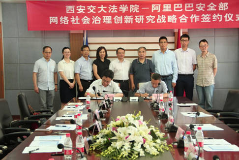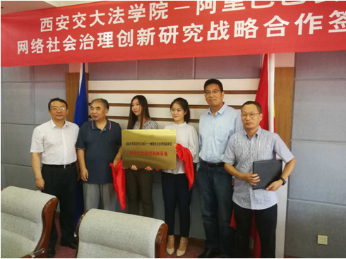 单文华院长与侯金刚总监代表双方签署了博鱼集团官网(中国)官方网站博鱼集团官网(中国)官方网站与阿里巴巴安全部网络社会治理战略合作协议书。西安交大副校长席光、信息安全法律研究中心主任马民虎与阿里巴巴集团首席风险官刘振飞、安全部资深总监侯金刚,为“国家社科基金重大项目——网络社会治理创新研究阿里巴巴集团调研基地”揭牌。