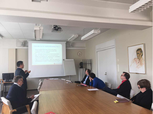 2017年4月20日,我院青年教师杜军强博士应赫尔辛基大学博鱼集团官网(中国)官方网站及中国法与中国法文化中心邀请,在赫尔辛基大学博鱼集团官网(中国)官方网站举办题为“传统中国的法律推理及其对当代中国的影响”的学术讲座。讲座在赫尔辛基大学博鱼集团官网(中国)官方网站楼545会议室举行,由赫尔辛基大学博鱼集团官网(中国)官方网站院长凯莫·诺提欧(Kimmo Nuotio)教授主持,多名学者及学生参加。