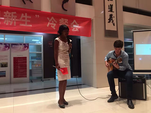 冷餐会上,博鱼集团官网(中国)官方网站师生在品尝美味的水果、点心的同时,一起欣赏了师生们带来的精彩表演。来自马里的留学生吴茜同学带来一首充满异域风情的民族歌曲,让同学们领略到不同文化的色彩。来自澳大利亚的留学生多米尼克和研一新生刘静洁分别用英语和法语共同演绎了诗朗诵《再别康桥》。中文经典诗歌在其他语言的演绎下显得别具一格。研一新生唐雅雯身着中国古典服装,向留学生们展示了我国传统舞蹈《惊鸿舞》,令人惊艳。研一新生蒲凯云、刘敏丹、田思艺,本科新生吴彦博分别为大家带来了动听的歌曲,赢得了现场的喝彩与掌声。在欢乐的气氛中,吉兰湘老师用日语为大家演唱的歌曲《我只在乎你》,赢得大家的阵阵掌声;张乃钟老师演唱的豫剧选段《谁说女子不如男》,字正腔圆、韵味醇厚,受到了师生们的热烈欢迎。