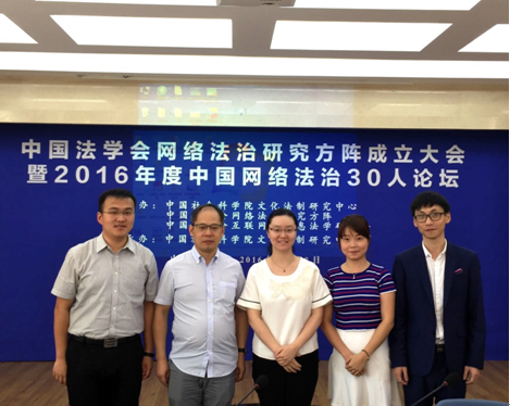 2016年8月28日,中国法学会网络法治研究方阵举行成立大会暨2016年度中国网络法治30人论坛。西安交大信息安全法律研究中心成功入选中国法学会“网络法治研究方阵”理事单位,成为全国五家理事单位之一。校社科处处长贾毅华、学院丁卫副院长受邀参加成立大会并致辞,信息安全法律研究中心副主任王玥副教授带领研究团队成员博士生马宁、党家玉参加论坛。开幕式由中国社科院文化法制研究中心主任、中国法学会互联网与信息法学会副会长周汉华主持。中国法学会研究部主任李仕春、中国法学会副会长李林、中国信息通信研究院政策与经济研究所所长鲁春丛、中南大学博鱼集团官网(中国)官方网站院长陈云良、博鱼集团官网(中国)官方网站社科处处长贾毅华、华东政法大学刑事司博鱼集团官网(中国)官方网站副院长王永全分别作为方阵理事单位代表致辞。