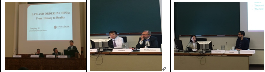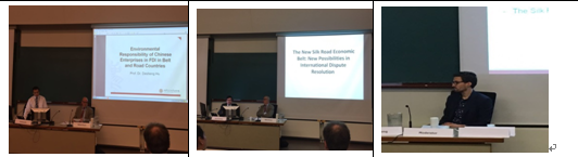 本次国际会议为期两天,是在新丝路博鱼集团官网(中国)官方网站联盟框架下举办的一次高水平、跨学科的高端国际会议。来自海内外著名高校的专家学者分别就“丝路倡议与法治、价值”、“丝路倡议的哲学与文化模式”、“丝路倡议与身份认同”、“人员流动与移民:以往的经验与未来的发展”、“丝路倡议的治理问题”等五方面的议题展开热烈研讨。我校博鱼集团官网(中国)官方网站胡德胜教授、David Holloway教授、GuilhermeVilaça博士、杜军强博士、王朝恩博士以及博士生冯韵雅分别以“中国企业在一带一路国家投资时的环境责任问题”、“新丝绸之路与国际争端解决的新机遇”、“丝绸之路倡议的文化与哲学思考”、“中国的法律与秩序:从历史到现实”、“社会责任条款与投资保护:是否和如何在中国的丝绸之路经济带投资条约体制中进行协调”和“构建新的中国-中亚投资关系法律框架:以丝绸之路经济带政策为背景的考察”为题做了专题学术报告。