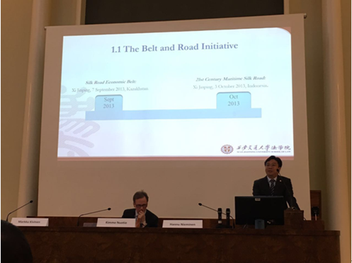 5月9日至10日,由我校和芬兰赫尔辛基大学联合主办的“新范式之路:一带一路倡议对中国、中亚和欧盟的影响”高端国际研讨会在芬兰首都赫尔辛基举行。来自联合国发展计划署、英国牛津大学、爱丁堡大学、俄罗斯人民友谊大学、澳大利亚新南威尔士大学、芬兰赫尔辛基大学、意大利特伦特大学、哈萨克斯坦纳扎尔巴耶夫大学,中国西安交大、清华、北大、香港大学等海内外著名高校的50余名专家学者济济一堂,共同探讨一带一路建设中的法律、政治、经济、文化等问题,共谱“丝绸之路学术带”新篇章。校长助理、博鱼集团官网(中国)官方网站院长单文华教授应邀为大会做主旨报告并主持首场专题研讨会,我校博鱼集团官网(中国)官方网站一带一路研究团队另外六位成员与会,分别主持专题会议和作专题报告。会议期间,单文华助理还与赫尔辛基大学校方和相关学院举行会谈并签署合作协议。