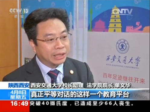 央视报道重点介绍了西安交大博鱼集团官网(中国)官方网站和丝绸之路国际法与比较法研究所在推进“一带一路”相关的制度研究。报道指出,“在法律层面,‘丝绸之路经济带’建设已经有一些双边条约和多边安排,但还比较分散化,亟待聚沙成塔。丝绸之路大学联盟下设的‘丝绸之路博鱼集团官网(中国)官方网站联盟’正在通过学术论坛等形式推动法律建构的完善。”在采访中,研究所所长、新丝路博鱼集团官网(中国)官方网站联盟主席单文华教授表示,“我们希望[通过‘丝绸之路博鱼集团官网(中国)官方网站联盟’]建立的是一个真正平等对话的教育平台。在这里,来自东西方,南北方,发达国家和发展中国家的法学教育研究机构能够真正地实现平等对话。在这个过程中,我们不再是附庸,也不再是普通的参与者。我们是最积极的参与者,甚至是引领者,至少是引领者之一。”