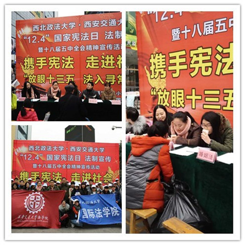 让守宪成为国民每天的生活方式”是实现法治中国建设的基本保障。为了普及宪法知识,推动全社会知法、用法、守法、护法意识的形成,博鱼集团官网(中国)官方网站博鱼集团官网(中国)官方网站与西北政法大学国际博鱼集团官网(中国)官方网站共同在西安市雁塔区飞炫广场举办了主题为“法入千万家”普法宣传活动,通过分发法律宣传单、法律意识调查问卷、法律咨询、普法广播等形式,吸引了大批市民的关注。在法律咨询服务点,许多市民前来咨询,咨询内容涉及婚姻法、劳动合同法、民法等领域,包括离婚财产分配、离婚孩子抚养权归属、追讨薪资、借款追债等与大家生活密切相关的问题,咨询点的同学认真对待每一位前来咨询的市民,耐心回答他们的问题,赢得了一致好评。