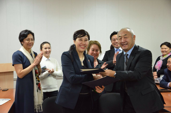 访问期间,代表们拜访了吉尔吉斯国家议会。议会国际委员会负责人接见我校代表并表示:中吉两国友好源远流长,高校之间的合作是促进国家友好交流的重要途径。11月19日下午,代表团主要成员拜访哈萨克斯坦教育部。该部高等教育司负责人介绍了哈国高等教育发展现状,对我校与欧亚大学即将开展的联合办学项目高度赞赏,认为其富于前瞻性、开创性,表示一定予以大力支持。
