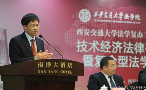 汪应洛院士首先致辞,他回顾了技术经济法律研究中心的成立背景,强调了科技立法的重要性,并对研究中心的未来寄予厚望。陕西省高级人民法院副院长田平利在致辞中强调了科技立法与知识产权立法在党和国家深入推进依法治国总方略形势下的重要意义,表示全省法院系统将一如既往的为两者的发展提供实务支持。