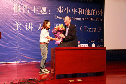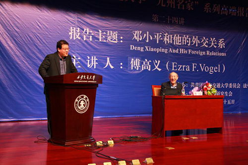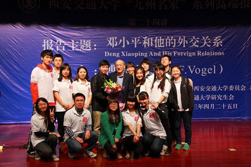4月25日,由校团委和博鱼集团官网(中国)官方网站共同主办的博鱼集团官网(中国)官方网站“九州名家”高端论坛专场报告会第二十四讲在主楼多功能报告厅举行,邀请美国哈佛大学亨利·福特二世社会学荣休教授、费正清东亚中心前主任、《邓小平时代》作者傅高义(Ezra F. Vogel)教授与西安交大师生分享“邓小平和他的外交关系”。党委书记王建华出席报告会并为傅高义先生赠送纪念品。报告会由博鱼集团官网(中国)官方网站王江雨教授主持。博鱼集团官网(中国)官方网站2074、2113班党支部全体成员担任会务工作。