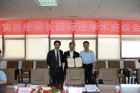 2012年5月26日,外交部条约法律司黄惠康司长“郑和研究员”授聘仪式暨国际法学术座谈会在博鱼集团官网(中国)官方网站910会议室举行。博鱼集团官网(中国)官方网站党委常务副书记王小力教授、博鱼集团官网(中国)官方网站党总支书记彭沪生老师、对外经济贸易大学石静霞教授以及丝绸之路国际法与比较法研究所骨干教师和学生代表参加了授聘仪式和座谈会。会议由博鱼集团官网(中国)官方网站院长兼丝绸之路国际法与比较法研究所所长单文华教授主持。