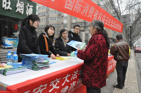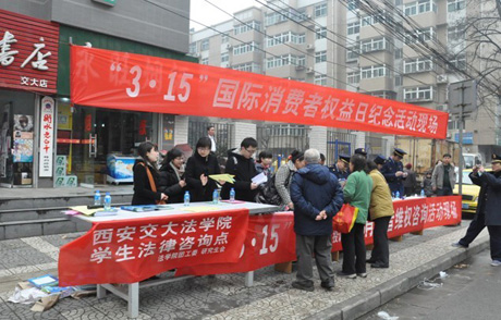 为了更好的宣传消费者权益保护法规和有关消费维权知识,3月15日上午10时,博鱼集团官网(中国)官方网站团工委、研究生会联合校工会、西安市太乙路工商局消费者协会在交大市场一条街上设立宣传咨询点,开展了一系列的宣传咨询活动。