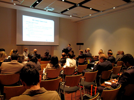 在发言中,苏金远博士从环境保护在“全球公域”军备控制中的角色,外层空间法中的环境保护要素,一般环境保护法对外层空间军事活动的限制等方面对选题进行了阐述。参会期间,苏金远博士还观摩了Manfred Lachs外层空间法模拟法庭,并与来自荷兰莱顿大学、加拿大麦吉尔大学、美国密西西比大学、美国内布拉斯加大学等外层空间法强校的知名学者进行了学术交流。