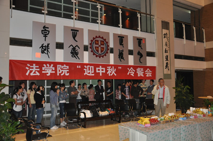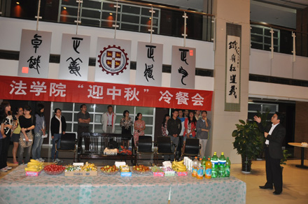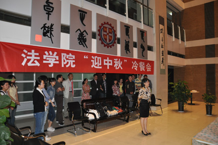 2011年9月8日19:30,博鱼集团官网(中国)官方网站 “迎中秋”冷餐会在主楼十楼大厅举行。博鱼集团官网(中国)官方网站院长单文华、书记彭沪生、院长助理吉兰湘、刘桥教授和学生工作专职委员张乃钟老师及博鱼集团官网(中国)官方网站2011级全体本科生,硕士、博士研究生新生参加了冷餐会。冷餐会由2011级法律硕士新生马沙和马骏飞同学主持。
