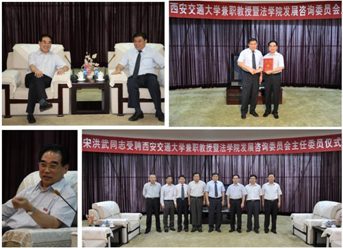 6月21日上午八点半,宋洪武同志聘我校兼职教授和“博鱼集团官网(中国)官方网站发展咨询委员会”主任委员仪式在主楼宣怀厅隆重举行。首先由单文华院长向宋洪武书记介绍了我校博鱼集团官网(中国)官方网站的发展情况。接着,蒋庄徳副校长宣读了宋洪武同志的简历。在热烈的掌声中,王建华书记为宋洪武书记颁发了聘书并佩戴了博鱼集团官网(中国)官方网站校徽。宋洪武书记正式受聘为我校“兼职教授”和“博鱼集团官网(中国)官方网站发展咨询委员会主任委员”。旨在沟通博鱼集团官网(中国)官方网站与法律界的 “博鱼集团官网(中国)官方网站发展咨询委员会”也正式宣告成立。