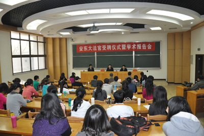 4月13日上午,应我校邀请,陕西省高级人民法院院长安东大法官受聘仪式暨学术报告会在主楼B103隆重举行。受聘仪式和学术报告会由博鱼集团官网(中国)官方网站院长单文华教授主持。博鱼集团官网(中国)官方网站党总支书记彭沪生、副院长王保民等参加了受聘仪式和学术报告会。