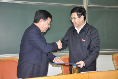 在热烈的掌声中,宋晓平副校长向安院长颁发了聘书,安东院长受聘为我校“兼职教授”和“博鱼集团官网(中国)官方网站发展咨询委员会副主任委员”,宋晓平副校长为安院长佩戴了博鱼集团官网(中国)官方网站校徽。