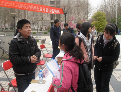 为更好地增强校园师生的维权意识,完善法律实践服务体系,3月15日中午,我院研究生团工委、院研究生会及法律爱好者协会联合校工会在校康桥苑西广场共同举办了“3.15西安交大消费者维权咨询活动”。