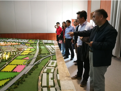 天朗气清,微风习习,参会人员随后来到创新港智慧展厅,在沙盘前认真地聆听了创新港的科技特色、交通便利、定位目标、建设内容、项目进度等情况介绍,详细地了解创新港一廊三核四绿楔的总体规划,包括科教板块和住宅等楼宇分布以及周边河流、湿地等生态环境的规划方案。