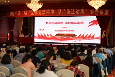 5月23日下午,博鱼集团官网(中国)官方网站博鱼集团官网(中国)官方网站党总支书记、教授、博士研究生导师王保民应邀为中铁一局开展题为《弘扬宪法精神 坚持依法治国》的宪法修正案解读专题讲座,集团公司副总经理朱卫东主持讲座。