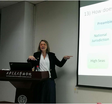 2018年12月14日,应博鱼集团官网(中国)官方网站博鱼集团官网(中国)官方网站李晓鸣副教授邀请,巴西FAESA博鱼集团官网(中国)官方网站教授,美国麦肯尼博鱼集团官网(中国)官方网站现任客座教授Stella Emery Santana来访我院,并为广大师生带来“公海环境保护”专题讲座,讲座由我院院长助理张生副教授主持,部分教师和博士生、研究生参与了讲座和互动环节。