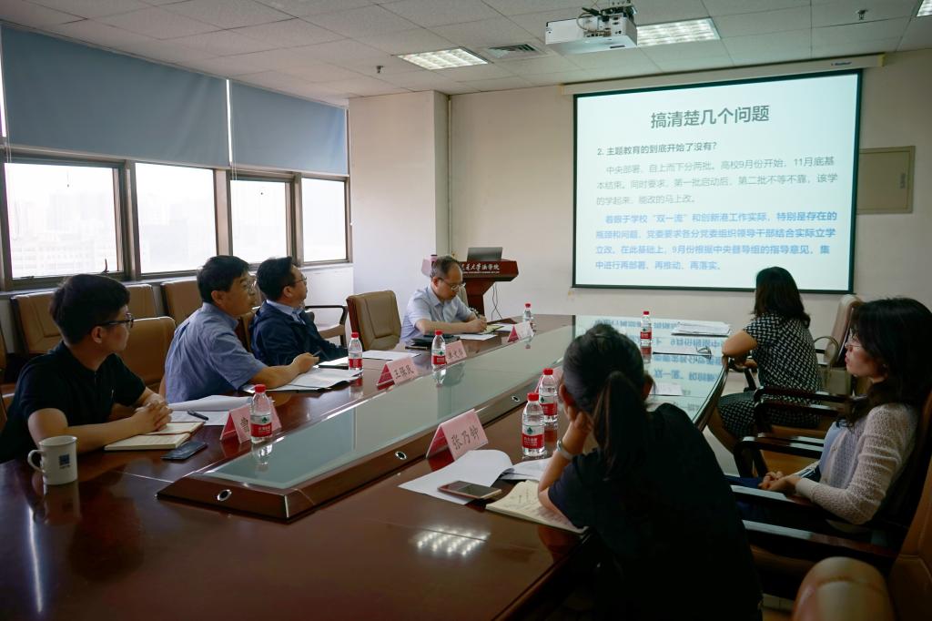 2019年6月13日下午,博鱼集团官网(中国)官方网站党总支开展中心组学习,学习贯彻“不忘初心,牢记使命”主题教育会议精神。博鱼集团官网(中国)官方网站领导班子成员、党总支委员、教职工支部书记参加了此次学习。宣传部李晓鸣副部长、陈晨老师到会指导,此次学习由党总支书记王保民主持。
