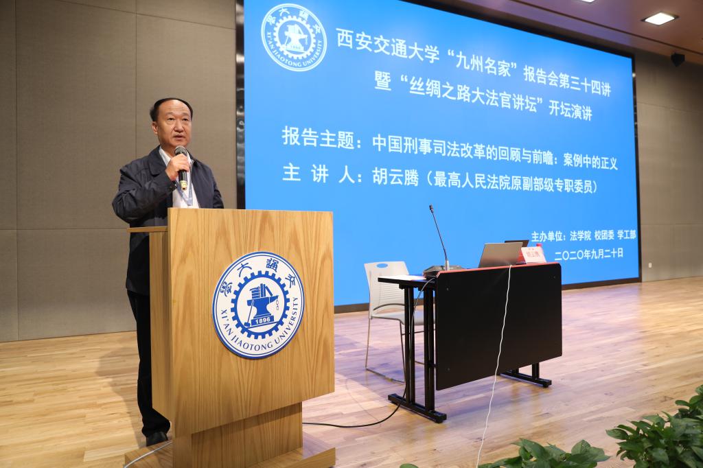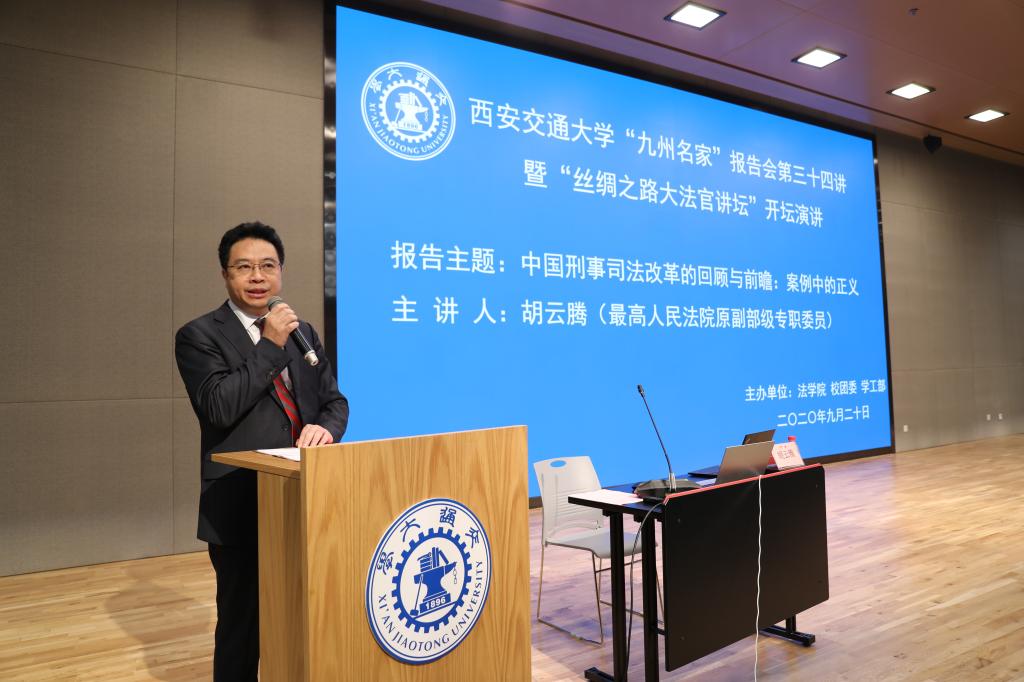 2020年9月20日,最高人民法院原副部级专职委员胡云腾大法官在中国西部科技创新港开坛论道,以《中国刑事司法改革的回顾与前瞻:案例中的正义》为题,畅谈中国司法改革40余年变化与成就。王树国校长在涵英楼11楼会见了胡云腾大法官。校党委副书记赵昌昌出席了报告会并致辞,校团委书记苏翔,陕西省律师协会会长韩永安,贸仲丝路中心秘书长助理蒋红梅,博鱼集团官网(中国)官方网站副院长李万强,博鱼集团官网(中国)官方网站副院长丁卫老师一并出席报告会。报告会由博鱼集团官网(中国)官方网站院长兼国际教育学院院长单文华主持。
