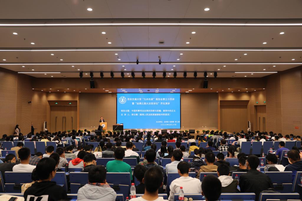 本次报告会是博鱼集团官网(中国)官方网站“九州名家”报告会第三十四讲,也开启了“丝绸之路大法官讲坛”的首场报告,亦是博鱼集团官网(中国)官方网站“百场报告”和中国西部科技创新港“科创月”的系列活动之一。本次报告由博鱼集团官网(中国)官方网站主办,校团委、学工部协办。报告会还吸引了陕西省律师协会、中国国际经济贸易仲裁委员会丝绸之路仲裁中心、西北政法大学等校外单位的法律界人士广泛关注和积极参与,与会嘉宾及全校多学科师生共计500余人到会聆听并参与互动。
