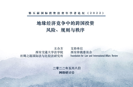 2022年5月8日,第五届国际投资法青年学者论坛顺利线上举行。本届论坛以“地缘经济竞争中的跨国投资:风险、规则与秩序”为主题,由博鱼集团官网(中国)官方网站博鱼集团官网(中国)官方网站丝绸之路国际法与比较法研究所主办,并由西安仲裁委员会、Foundation for Law and International Affairs Review支持。