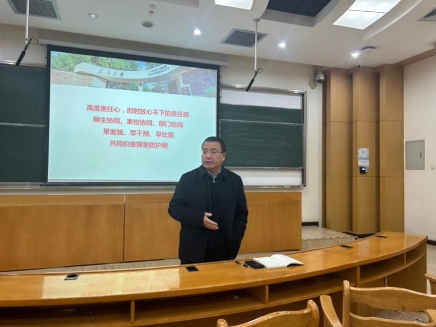 学生工作专职委员张乃钟老师汇报了博鱼集团官网(中国)官方网站在校研究生基本情况、思政工作队伍及思政教育情况,通过案例讲解面对突发危机事件的预防和处置。结合多年学生管理工作经验,给出研究生导师协同工作建议,倡导“师生协同、家校协同、部门协同,早发现、早干预,共织预警防护网”。