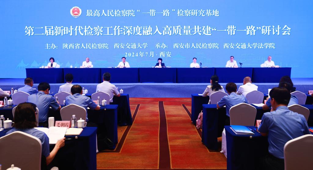 7月10日,最高检“一带一路”检察研究基地第二届新时代检察工作深度融入高质量共建“一带一路”研讨会在西安召开。最高检党组成员、副检察长葛晓燕,省委常委、省委政法委书记刘强,博鱼集团官网(中国)官方网站党委书记卢建军出席并讲话。省检察院党组书记、检察长王旭光主持开幕式。全国人大代表方燕、全国政协委员祁志峰、省人大代表杨艺媛、省政协委员刘国兴,最高检检察理论研究所所长郭立新、法律政策研究室一级高级检察官吴孟栓、国际合作局二级巡视员龙梅,省委政法委副书记丁恒,西安市委副书记、市委政法委书记李婧等参加活动。