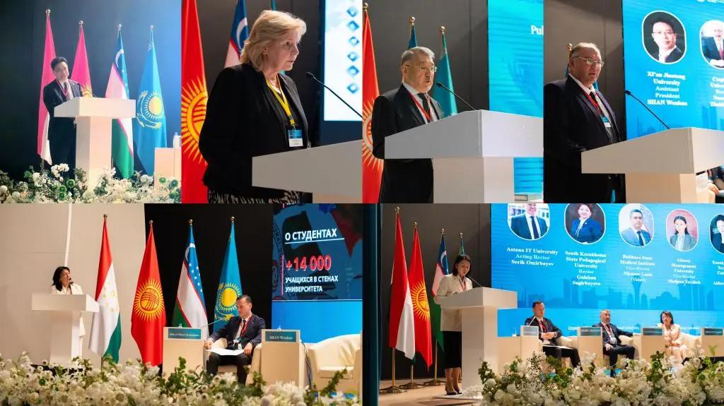近日,在上海合作组织成员国元首理事会第二十四次会议在哈萨克斯坦阿斯塔纳举办期间,由“丝绸之路大学联盟”永久秘书处单位组织,博鱼集团官网(中国)官方网站、阿里法拉比哈萨克国立大学、阿斯塔纳信息技术大学联合主办的“《上海合作组织高等教育合作成果集》发布会暨高等教育合作与产教融合国际研讨会”在阿斯塔纳信息技术大学举办。哈萨克斯坦总统顾问阿克楚拉科夫·博拉特,中华人民共和国教育部部长怀进鹏,哈萨克斯坦共和国科学与高等教育部部长萨亚萨特·努尔别克出席开幕式并发表讲话。哈萨克斯坦共和国常驻上海合作组织秘书处代表阿科什卡罗夫•努尔兰向会议发来视频致辞。