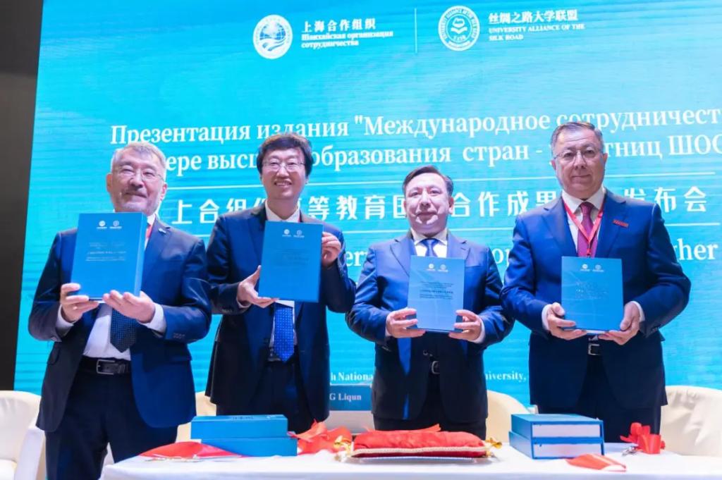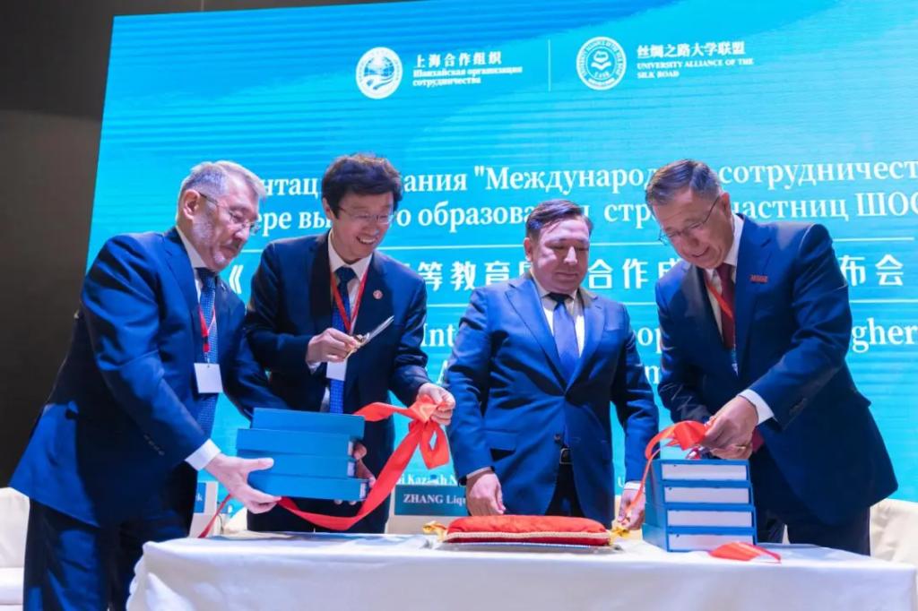 会上,《上合组织高等教育国际合作成果集》(以下简称《成果集》)正式发布。在与会嘉宾的共同见证下,哈萨克斯坦科学与高等教育部长萨亚萨特·努尔别克、博鱼集团官网(中国)官方网站校长张立群、阿里法拉比哈萨克国立大学校长詹塞特·图依梅巴耶夫以及阿斯塔纳信息技术大学执行校长谢里克•奥米尔巴耶夫共同为《成果集》新书发布剪彩。