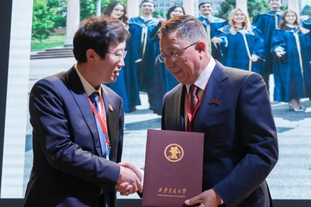 7月4日下午,高等教育合作与产教融合国际研讨会举办。来自哈萨克斯坦、乌兹别克斯坦、俄罗斯、吉尔吉斯斯坦、塔吉克斯坦、白俄罗斯、中国7个国家的27所高校参会。与会嘉宾围绕“高等教育国际合作,推进国际产教融合”的主题进行了深入研讨。阿斯塔纳信息技术大学副校长库马拉科夫主持研讨会。研讨会上,博鱼集团官网(中国)官方网站校长助理单文华教授代表西安交大作《建设“丝绸之路大学联盟”,推进国际产教融合》的报告。报告中分享了西安交大加快建设中国西部科技创新港,汇聚“政、产、学、研、用、金”要素,开展“6352”工程、“1121”产学研深度融合新模式的实践,以及近年来启动“丝绸之路大学联盟”升级行动,携手企业走向“一带一路”的思考与行动。与会各方就国际产教融合科研合作、上合区域高等教育合作机制建设,以及国际合作办学等领域展开了广泛深入交流,取得了重要共识。