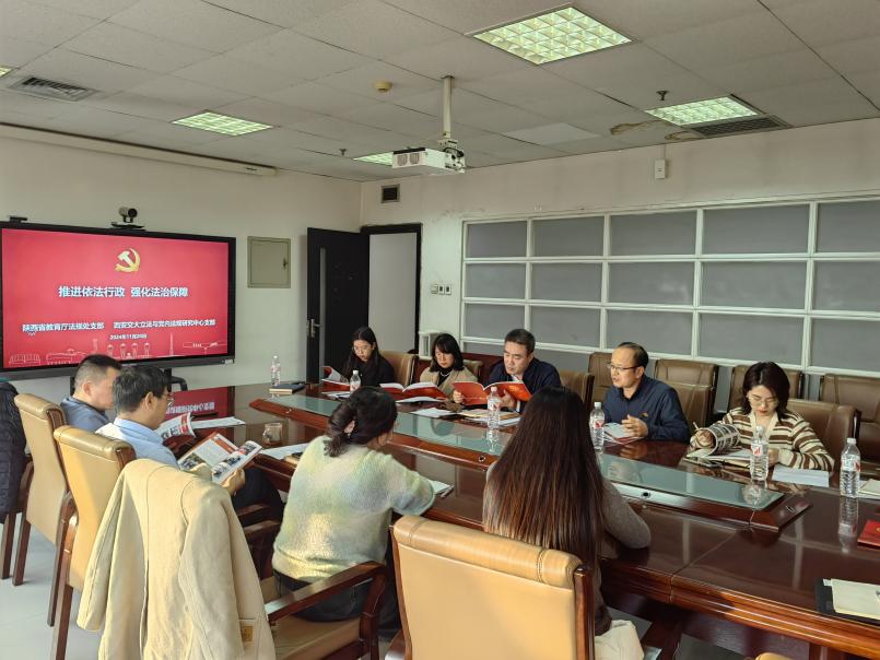 为深入学习贯彻党的二十届三中全会精神,进一步加强党支部之间的交流与合作,11月20日下午,省教育厅法规处党支部一行与博鱼集团官网(中国)官方网站立法与党内法规研究中心党支部在兴庆校区主楼E910会议室联合开展了“推进依法行政强化法治保障”的主题党日活动。省教育厅法规处支部处长付仲锋、副处长张世飞等一行七人,和博鱼集团官网(中国)官方网站博鱼集团官网(中国)官方网站党委书记王保民教授、立法与党内法规研究中心支部书记杜军强老师等立法支部师生代表共同参加了此次活动,会议由支部书记杜军强老师主持。