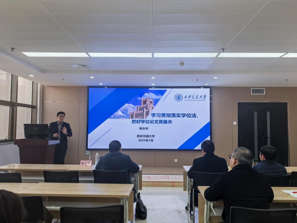 陈永华主任以“学习贯彻落实学位法,把好学位论文质量关”为题作报告。他详细解读了《学位法》《博鱼集团官网(中国)官方网站学位授予工作办法》《博鱼集团官网(中国)官方网站关于进一步加强研究生学位论文质量保障的若干意见》等学位管理文件,通报了学校学位授予、学位质量保障、学术不端处理以及导师管理规定等情况,并就导师牢把学位论文质量关、实现论文抽检“零问题”分享了自己的思考和建议。