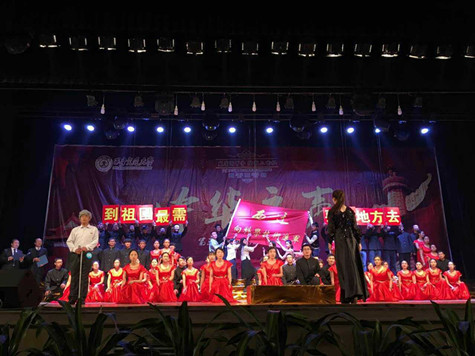 “向前进!向前进!西迁气势不可阻挡!向前进!向前进!朝着西迁的方向!”随着全体合唱队员的齐声演唱,整个合唱队伍变换成“XQ(西迁首字母)”和“60”的造型,一面写有“西迁!想科学技术进军!”旗帜迎风飘扬,将现场氛围带至顶点,瞬间点燃了全场观众的激情。大树西迁,饮水思源,在“到祖国最需要的地方去!”的誓言中展现了新一辈博鱼集团官网(中国)官方网站与化工学院青年学子的拳拳报国情。