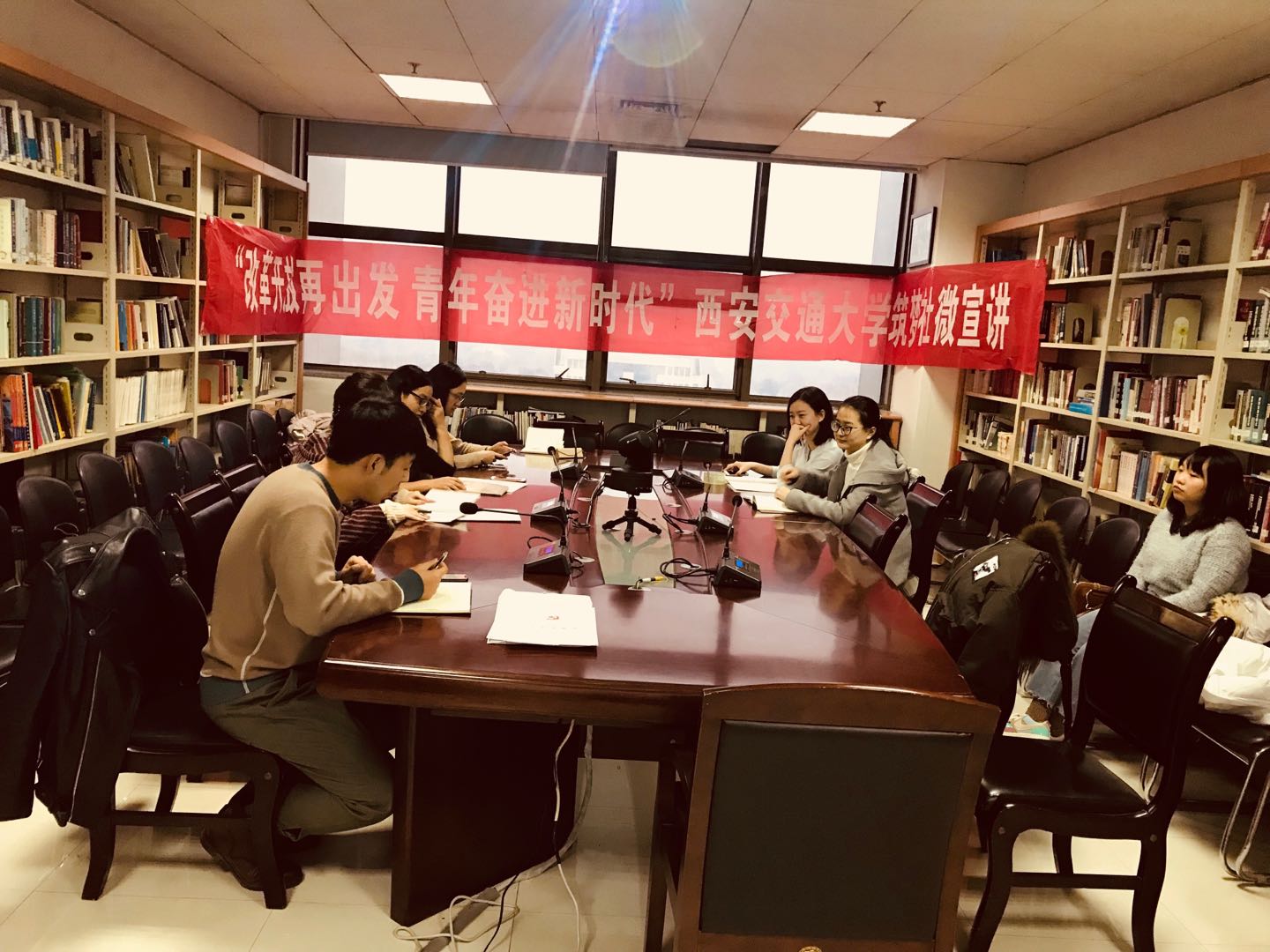 12月5日下午,博鱼集团官网(中国)官方网站硕7155(三年制)党支部在主E1004会议室召开支部党员大会,此次邀请博鱼集团官网(中国)官方网站筑梦社成员王怡文、高镜雅、黄佳慧为支部成员开展改革开放专题微宣讲。博鱼集团官网(中国)官方网站副院长李万强教授参加了此次活动。
