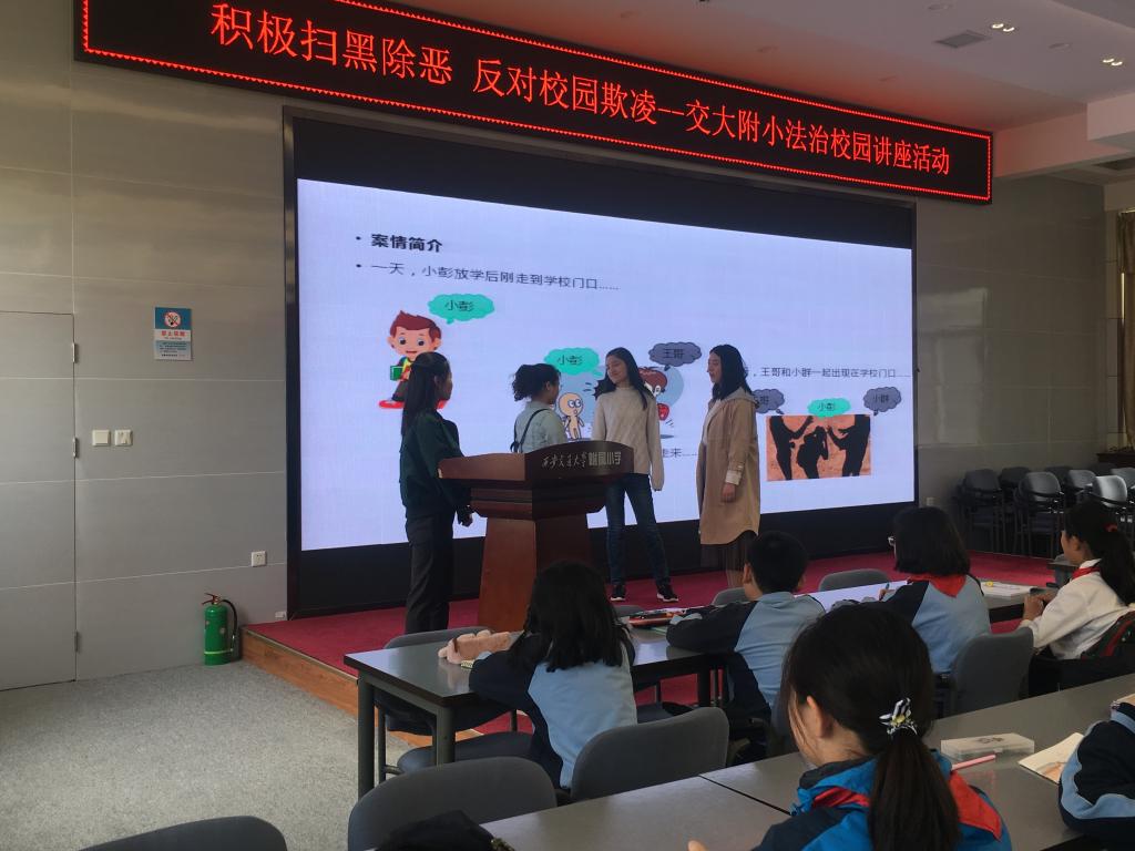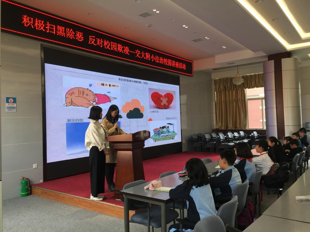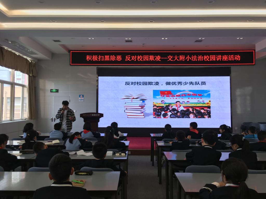 2019年4月15日,博鱼集团官网(中国)官方网站博鱼集团官网(中国)官方网站硕7155班(三年制)党支部一行10人来到博鱼集团官网(中国)官方网站附属小学,以“积极扫黑除恶,反对校园欺凌”为主题开展了校园法治宣讲活动。本次宣讲分三组进行,由浅入深,以视频、情景表演、信件沟通等方式形象生动的向小学生们传达了面对校园欺凌,该如何保护自己,如何拿起法律的武器保护自己的权益。