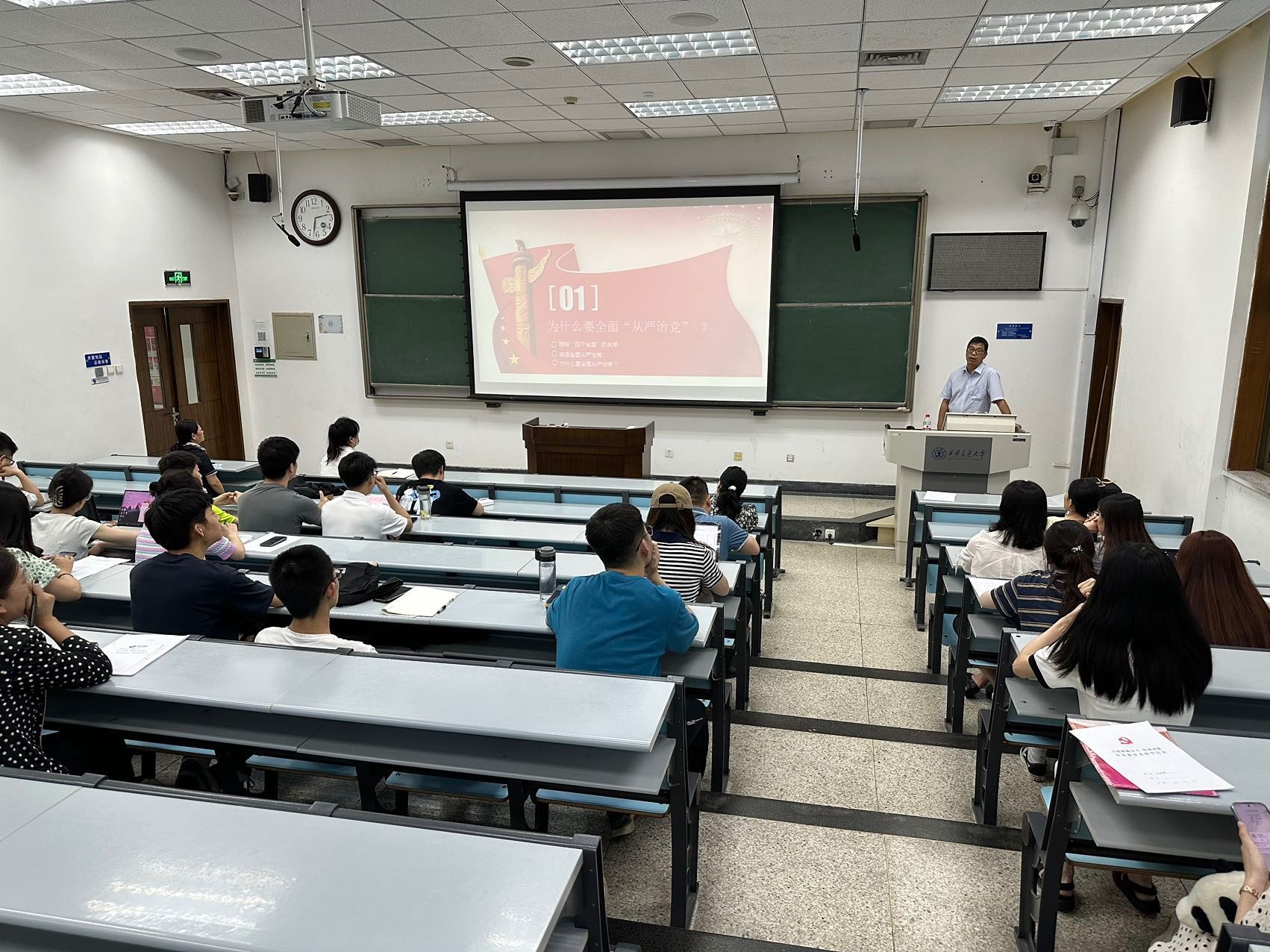 下午,博鱼集团官网(中国)官方网站党总支书记、博鱼集团官网(中国)官方网站立法与党内法规研究中心主任王保民教授为全体发展对象讲授了题为“全面从严治党,锻造坚强领导核心”的主题教育党课。报告中,王保民书记从建党治党的历史沿革、原因分析、历史经验,主要任务、精神原则、具体举措等多个方面深入讲解了全面从严治党制度体系,进一步为同学们未来成为一名忠诚可靠、严守党纪的合格党员打下了坚实理论基础。接着,党总支邀请到马克思主义学院马列读书社的成员郭越、陈瑀峰分别做了题为“赓续伟大建党精神,凝聚青年奋进力量”和“学习贯彻习近平新时代中国特色社会主义思想”的专题报告,鼓励同学们紧紧跟随党的脚步,以赤诚之心,不负时代,努力前行,竭尽全力,为新时代党和国家的事业发展贡献自己的力量。